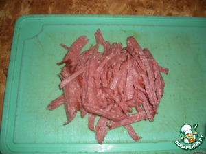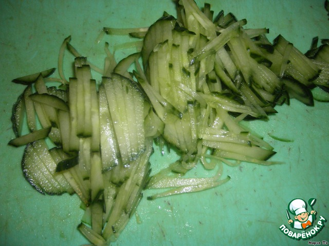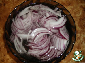Лук нарезаем вдоль. Заливаем холодной водой на 15-20 минут, чтобы ушла горечь.