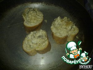 Выкладываем "багетные кольца" на противень, внутрь кладем грибную начинку.