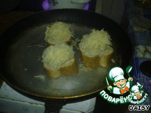 Сыр измельчаем на терке и на каждый пенек кладем сырную "шапку.
