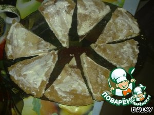 Нижнюю часть также режем на 8 долек и смазываем каждую сгущенным кофе.