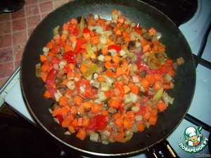 Пока разделывали тушку, на сковородке обжариваем до готовности овощное ассорти на масле.