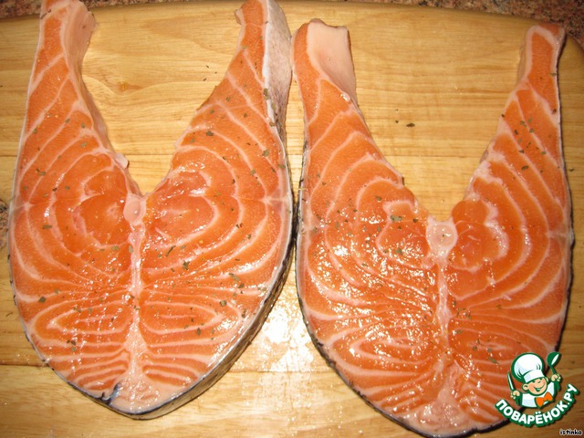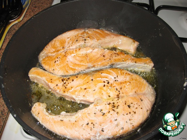 Рецепт "Лосось с соусом из шампанского и красной икры":