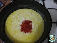 Лук, сливки, шампанское на маааааленьком огне подержать 3-4 минуты. Выключить огонь под сковородой, добавить 2 ст.л. красной икры, перемешать аккуратно. |
