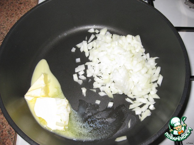 Идею рецепта я увидела на канале Телекафе. Но не записала сразу, поэтому экспериментировала по памяти. Приготовим соус для лосося. Луковицу мелко порежем. |