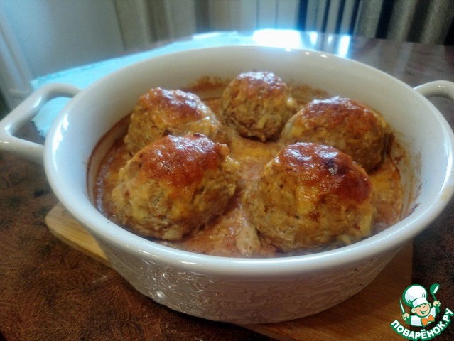 На зразы кладём дольки помидора, посыпаем тертым сыром и отправляем в духовку на 30-45 мин. при темп.180*С.