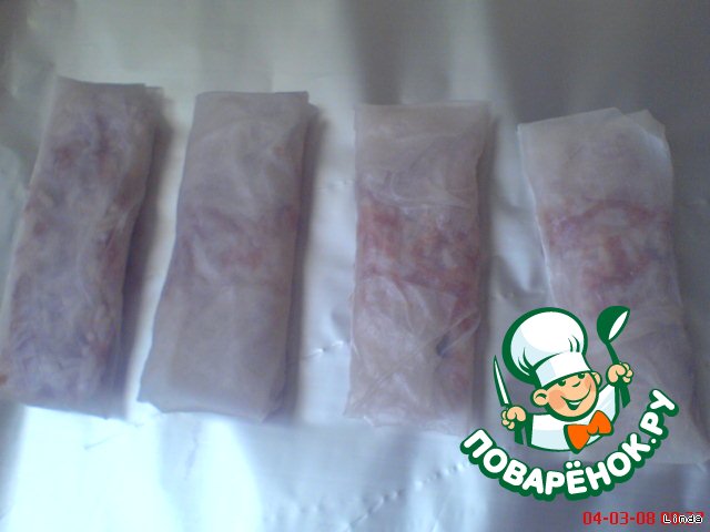 В пакете много галет, поэтому я часть рулетиков заворачиваю в фольгу и замораживаю.