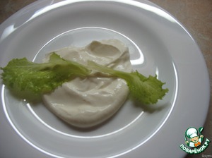 Приступаем к "выращиванию" ёлочки. Сначала сделаем снег. Его вариантов может быть несколько, если вы поститесь, то выбираете постный майонез, если нет, то сметану или густой йогурт.