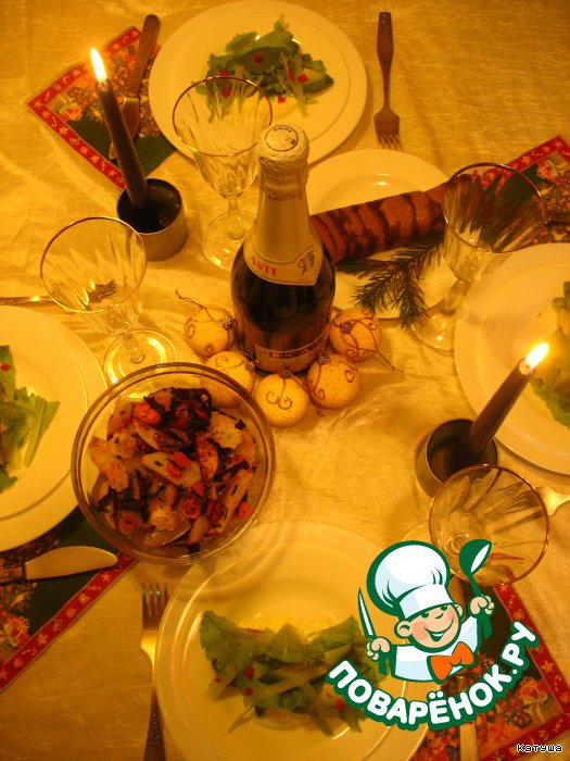 В Новый год особенно хочется почувствовать тепло домашнего очага. Собраться в семейном кругу, вспомнить все приятное, что принес минувший год, и помечтать о грядущем. При этом и отведать хочется тоже что-то очень домашнее, ароматное и невероятно красивое, например, как наш теплый салат. На конкурс: "Gorenje: новогодняя композиция"