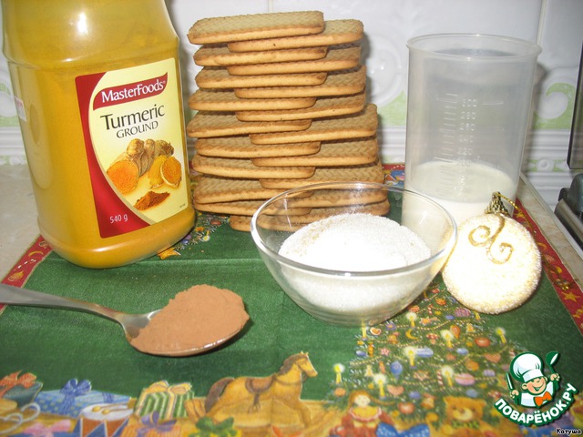 Взять 2 чашки, в одну положить куркуму и 50 гр сахара (при желании добавить цедру), в другую какао и 50 гр сахара. Залить горячим молоком, перемешать.