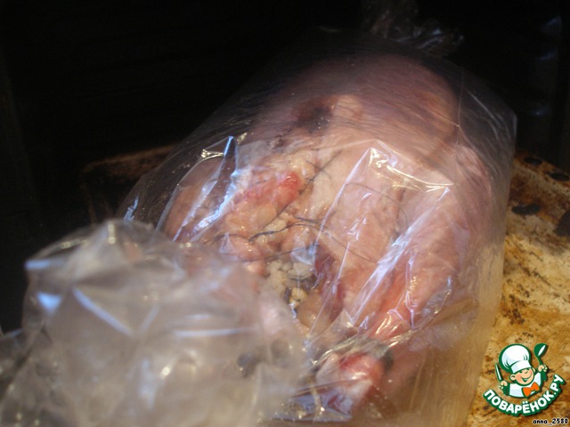 Помещаем птицу в рукав и отправляем в разогретую духовку на 2,5 часа.