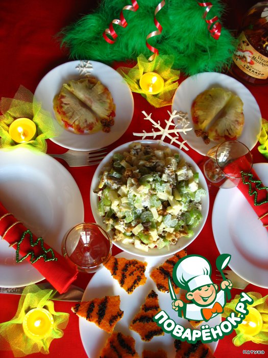 Многие в новогодние праздники озабочены тем, как вкусно поесть и при этом не набрать лишних кг. Наш стол, обращу внимание, что он постный, поможет справить праздник не только вкусно и полезно, но и не набрать лишних сантиметров. На конкурс "Новогодняя композиция".