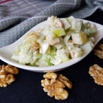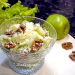 При изучении английского языка в учебниках часто сталкиваешься с названием Waldorf salad (Вальдорфский салат). Оказалось, что это очень популярное и вкусное блюдо. Первый раз его приготовил в 1893 г. в Нью-Йорке метрдотель "Уолдорф Астория" Оскар Тщирке. Изначальный рецепт состоял только из кубиков яблока, сельдерея и майонеза. Сейчас количество ингредиентов варьируется. Этот - наиболее классический и распространенный. Обязательно попробуйте, он не только вкусный, но и очень красивый. На конкурс "Gorenje: новогодняя композиция"