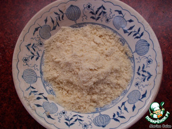 100 г миндаля измельчаем в кофемолке или блендером как можно мельче. Получаем миндальную муку. -