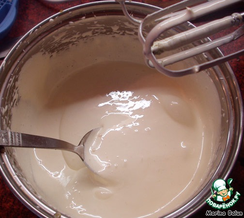 Горячий сироп тоненькой струйкой вливаем в желтки, при этом продолжаем их сбивать. И дальше взбиваем их до получения густой эластичной массы беловато-желтоватого цвета.