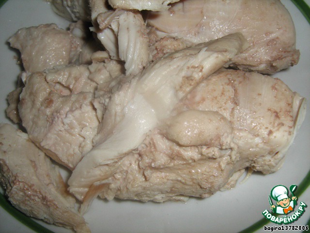 Окорочка (я брала куриную грудку) отварим и остудим.
