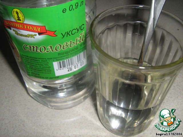Затем сделаем маринад: в холодную воду добавим уксус.