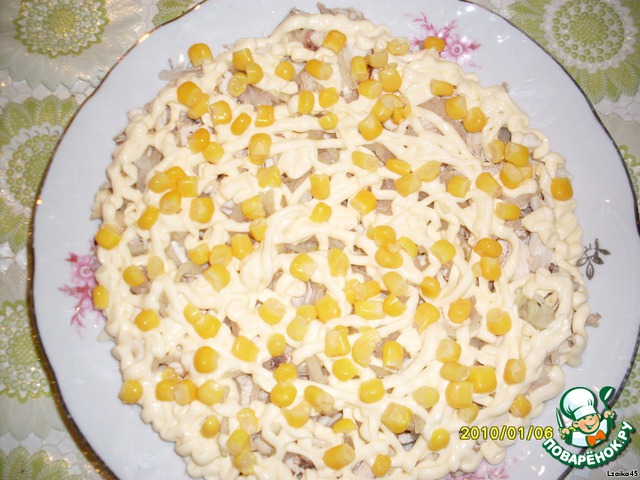 Верх салата смазать майонезом, посыпать орехами и украсить по своему желанию!!!