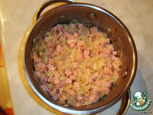 Итак, колбаску я порезала кубиками. Добавила в нее аджички, если нет аджички, то подойдет все, что относится к томатам, майонез. Все перемешать и добавить обжаренный лук.