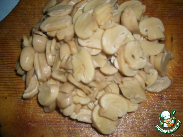 - Шампиньоны ( консервированные целые) — 1 бан.
