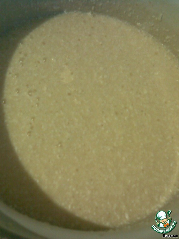 Итак, смешать манку и кефир (простоквашу). Дать постоять 4-5 часов при комнатной температуре. -