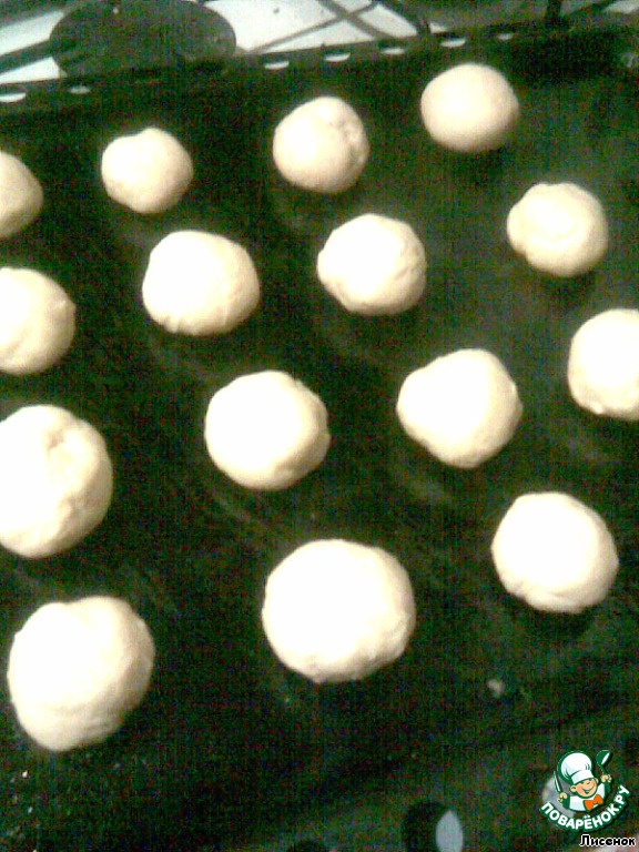 Затем отрываем от теста третью часть. Скатываем шарики размером побольше грецкого ореха.
