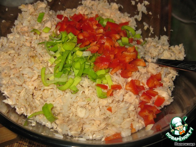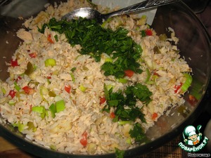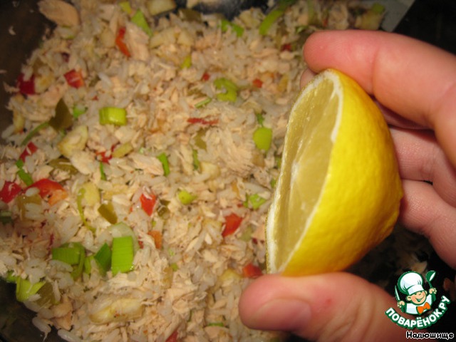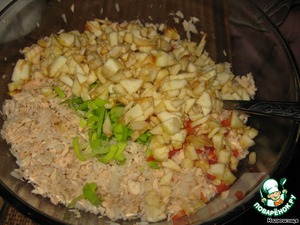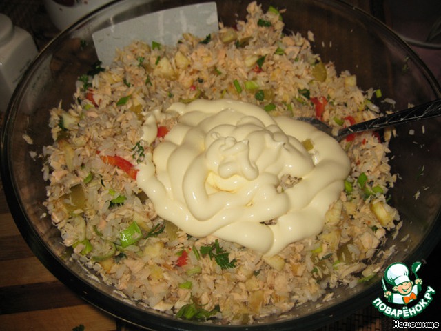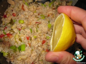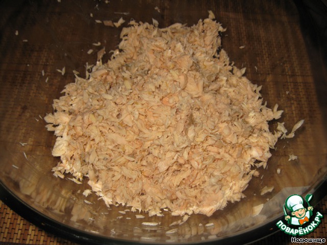Разминаем руками мясо рыбы прямо в салатник. Так как мы это делаем руками, то уж точно ни одну косточку не пропустим в салат.