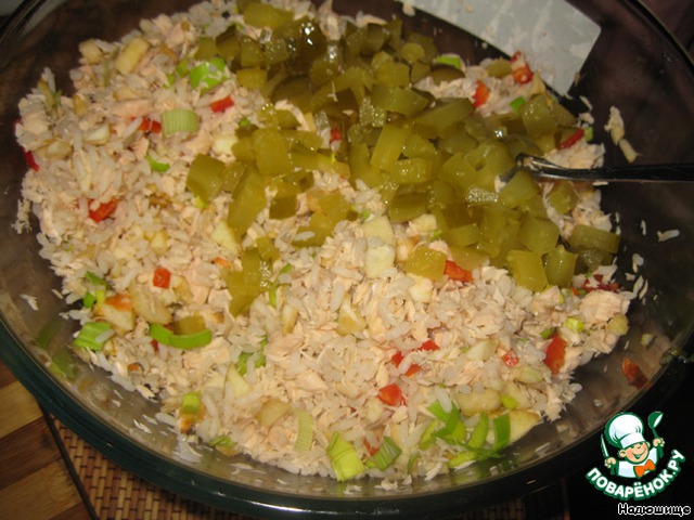 Вот такой салатик. Овощи, фрукты, рис - отлично подружились с форелькой :)
