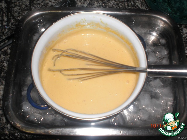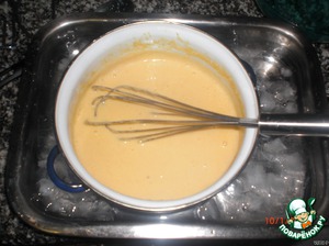 Поставить кастрюльку с кремом в ледяную воду и мешать пока не начнёт густеть.
