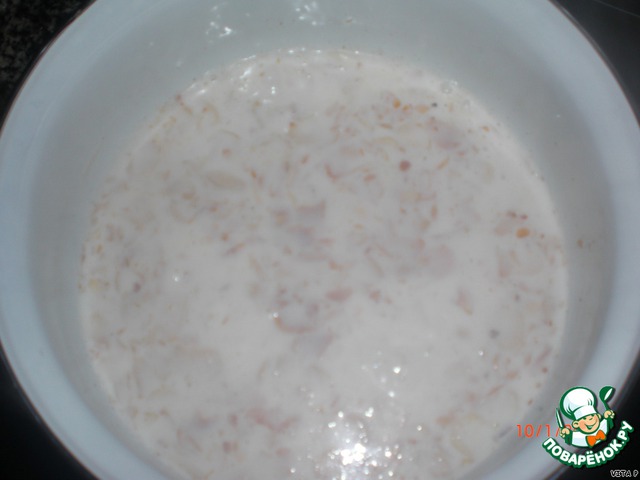 Пересыпать в кастрюльку, залить молоком и дать закипеть, снять с огня, накрыть крышкой и оставить на 30 минут.