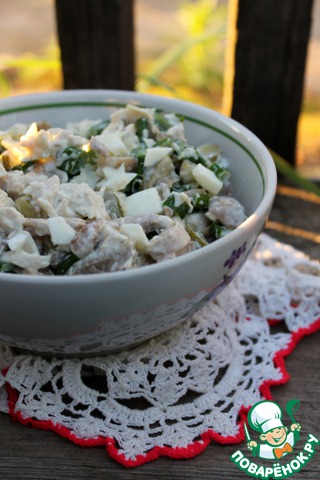 Этот салатик иронически назван "Птичкой", потому что его основные ингредиенты принадлежат к продуктам категории "Птица") А вообще вкусный салатик! Рецепт не мой, но готовила и фотографировала я. Попробуйте!