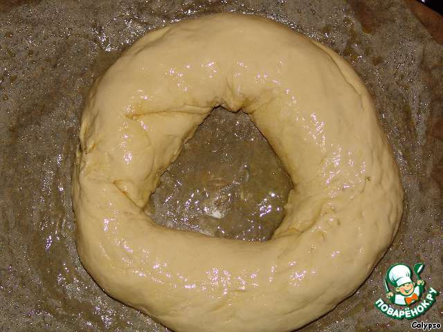 Из теста делаем колбаску, сгибаем ее и соединяем концы.