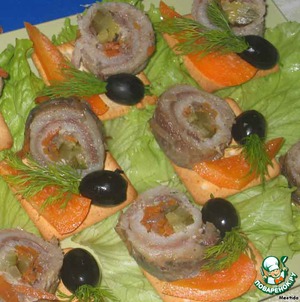 какой же праздничный стол может обойтись без селедки?... нежные ломтики, приправленные душистым маслом, лучком и капельками уксуса... или селедка под шубкой... пикантная жареная сельдь... или кусочки селедочки в пикантном томатном или сметанном соусе.. в любом виде эта рыбка хороша... предлагаю Вам отведать нежные рулетики из селедочкис начинкой из соленого огурчика и морковочки в маринаде.. или же можно обогатить и освежить вкус закуски, добавив кусочек перчика и маслинку очень простая в приготовлении закусочка... которая всегда очень быстро заканчивается на столе...