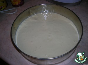 В разъемную форму выкладываем одну часть бисквита, выкладывает половину суфле, накрываем второй частью, сверху выкладываем оставшуюся часть суфле - и в холодильник на 15 минут.