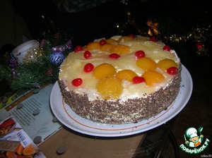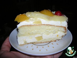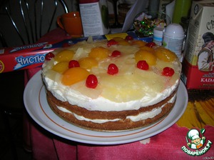- Сироп сахарный (ананасовый, абрикосовый 200г - для пропитки коржей, 150г - для набухания желатина) — 350 г