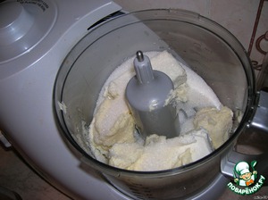 Для творожного суфле вбиваем творог 500г, масло 100г, сахар 1 стак., сливки 100г, ванилин.