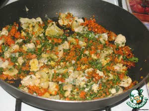 Обжариваем морковь и капусту, солим. Натираем на крупной терке сыр.