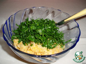 Перемешиваем с яйцом, солью и петрушкой (кому нравиться - с чесноком).