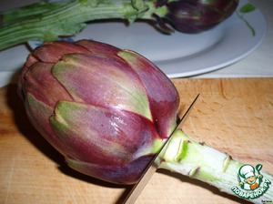 Если артишок с колючками, срезаем их с каждого листа, а так же с верхушки. У меня были без колючек, но я привыкла так очищать.