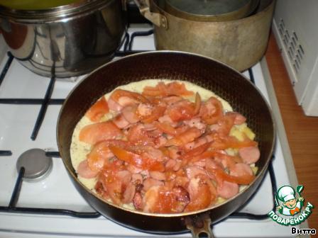 Подержать на среднем огне 2-3 минуты. Потом поместить в духовку и запекать до тех пор, пока яичная масса не станет твердой.