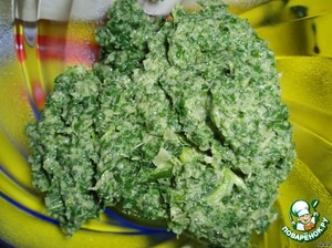 Затем сливочное масло, пюре из тунца и листьев. Перемешать хорошенько.