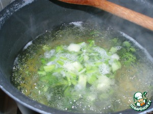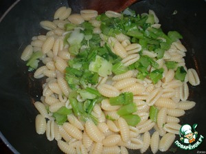 Порезанные стебли положим варить вместе с пастой в кипящую подсолeнную воду.