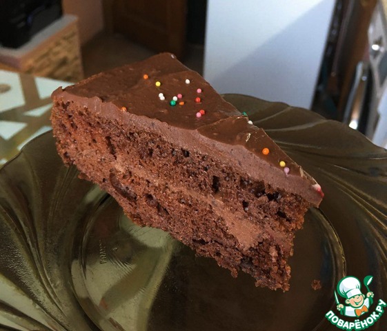 Тортик из разряда быстрых и вкусных, для любителей шоколада. Корж, правда, немного суховат, но это компенсируется мягким и не застывающим кремом. Крем очень вкусный, с ярким шоколадным ароматом. Если оставить торт часов на 10, то крем пропитает коржи. Поэтому делать лучше вечером, чтобы не соблазняться! Рецепт с сайта "Хорошая кухня".