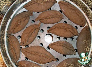 Укладываем налепленные вареники на хорошо промасленные секции пароварки или мантышницы, с большими промежутками между варениками. При варке они увеличиваются в размере почти вдвое… Варим 30-35 минут.