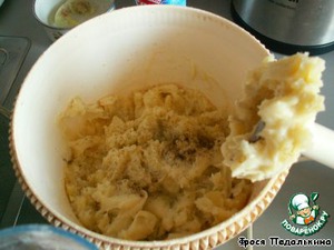 Добавить просеянную муку, яйцо, замесить тесто, добавляя немного муки до тех пор, пока оно перестанет быть липким.