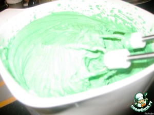 Белки взбить до густых пиков, постепенно добавляя сахар, а потом по-одному добавляем желтки. Миксер выключаем и просеиваем муку, осторожно помешивая лопаткой.