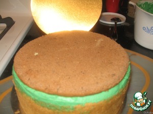 Собранный торт покрыть картонным кружочком по размеру и перевернуть. -