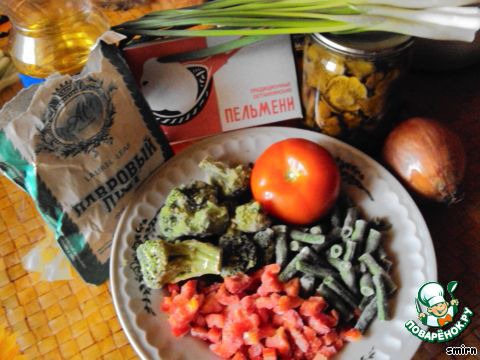 Ингредиенты для «Пельмени с грибами в горшочке»:
