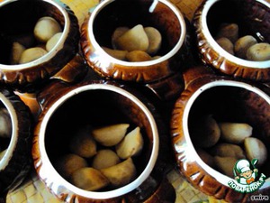 Овощи, наверное, можно предварительно не отваривать, ведь они успеют приготовятся в горшочках.