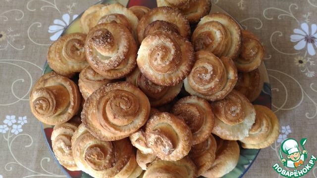 ОЧЕНЬ ВКУСНЫЕ ПЕЧЕНЬКИ! А какие красивые! Спасибо за рецепт!. У меня муки ушло побольше, т. к. тесто было очень липкое, и получилось 50 розочек, т.к. разрезала я полоски толщиной 2 см. Буду готовить и не раз!