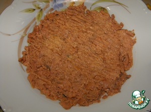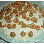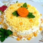 Отличный салат и поэтому настоятельно рекомендую всем. А Вам - для получения горы комплиментов от ваших едоков. Нежнейшая консистенция, и прекрасно сбалансированный вкус не оставляет ему никаких шансов остаться несъеденным. Не могу показать, как получилось внутри, так как готовила на ДР, не было времени фотографировать. Приятного аппетита!!!